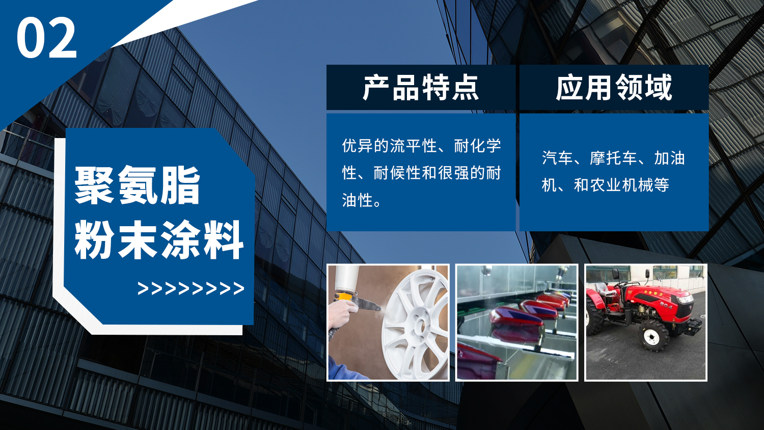 廣泛應用于家用電器、汽車、建材、散熱器、自行車、汽車、家具、健身器材、管道等諸多領域,根據各個領域產品的表面涂裝的不同要求,為其量身定做設計,批量生產不同系列產品。產品以優異的性能,穩定的品質享譽全省、暢銷全國,并逐步走向國際市場。